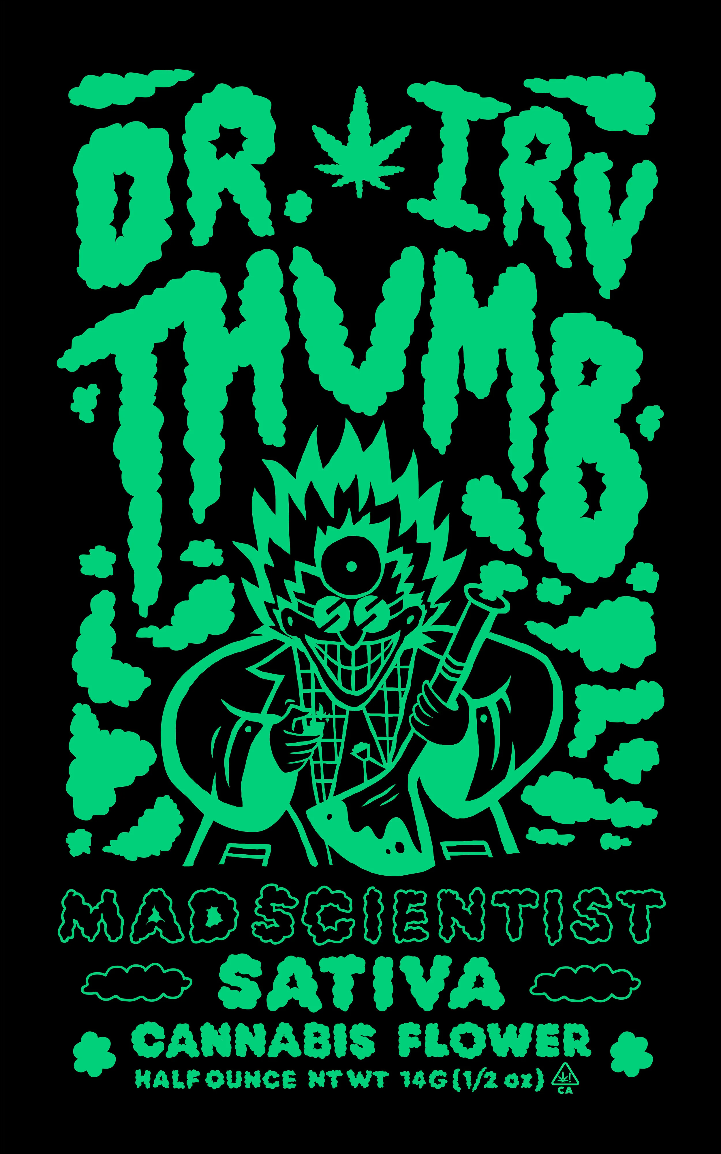 Illustration for Dr. Irv Thumb dispensary, located in Los Angeles, CA. Sourced through my remote internship at YourLogoSucks.